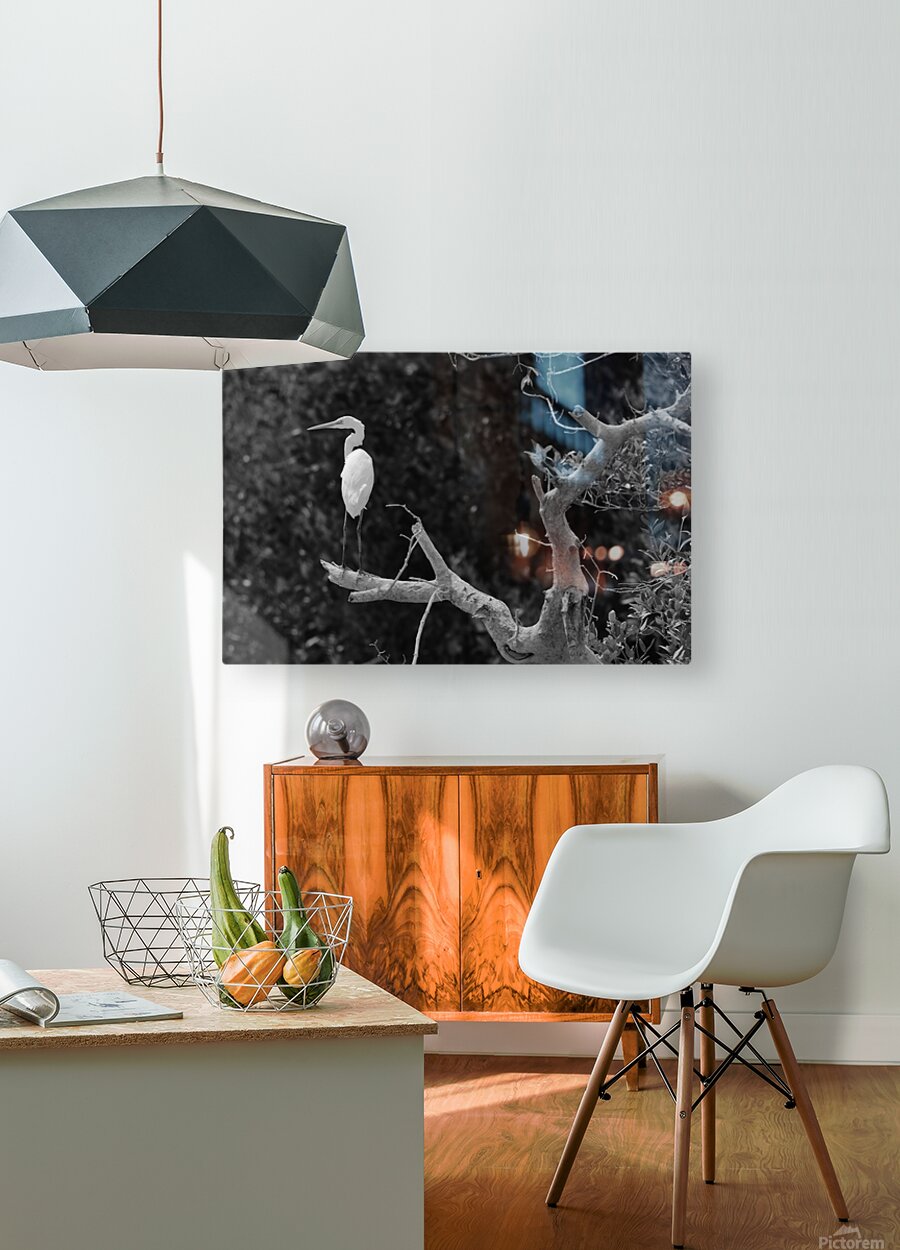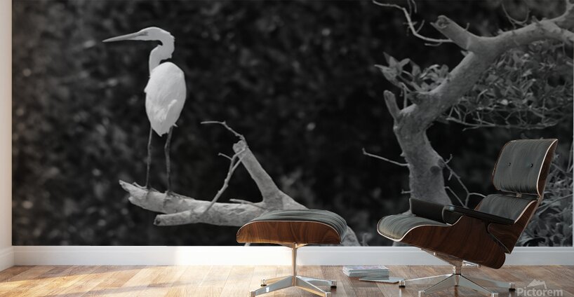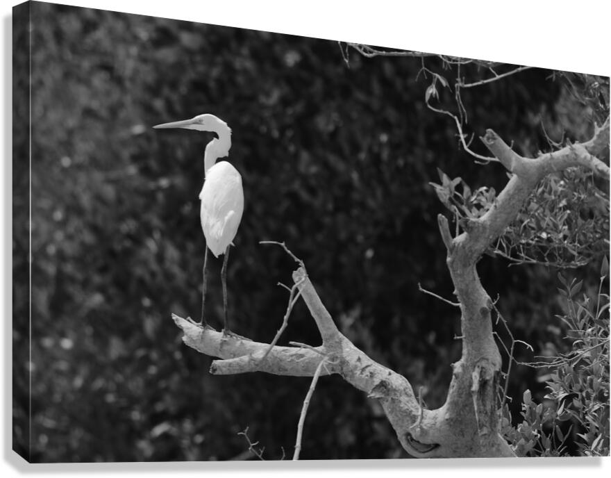Perched gracefully on a weathered branch, this white heron stands as a guardian of the wilderness. The black-and-white composition enhances its elegance, transforming a quiet moment in nature into a timeless work of art. A perfect piece for minimalist interiors, nature lovers, and those who appreciate the serene poetry of wildlife.