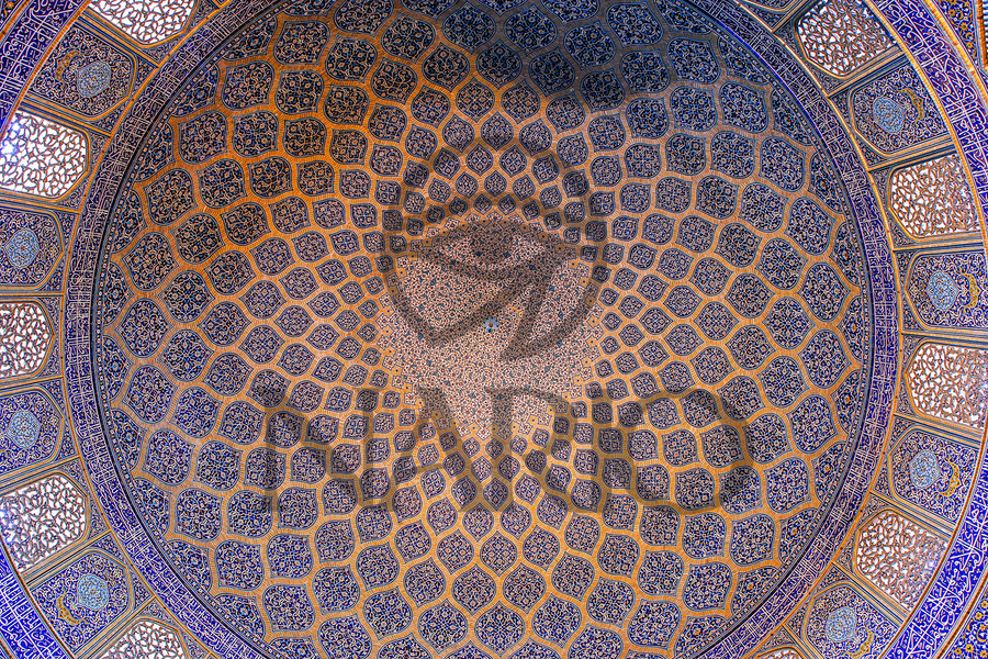 An exquisite view of the dome of the Shah Mosque (Sheykh Lotfollah Mosque) in Isfahan, Iran. This masterpiece of Persian-Islamic architecture captures...[+]