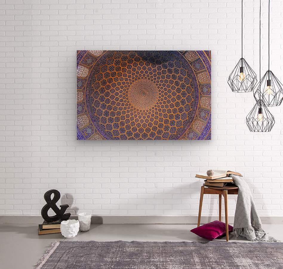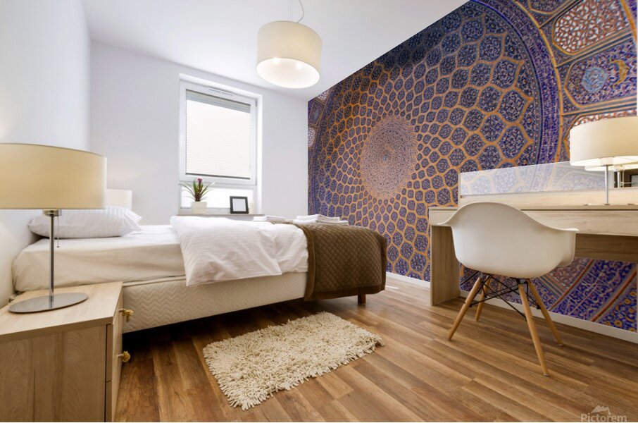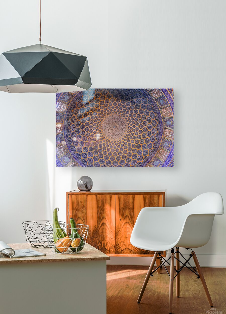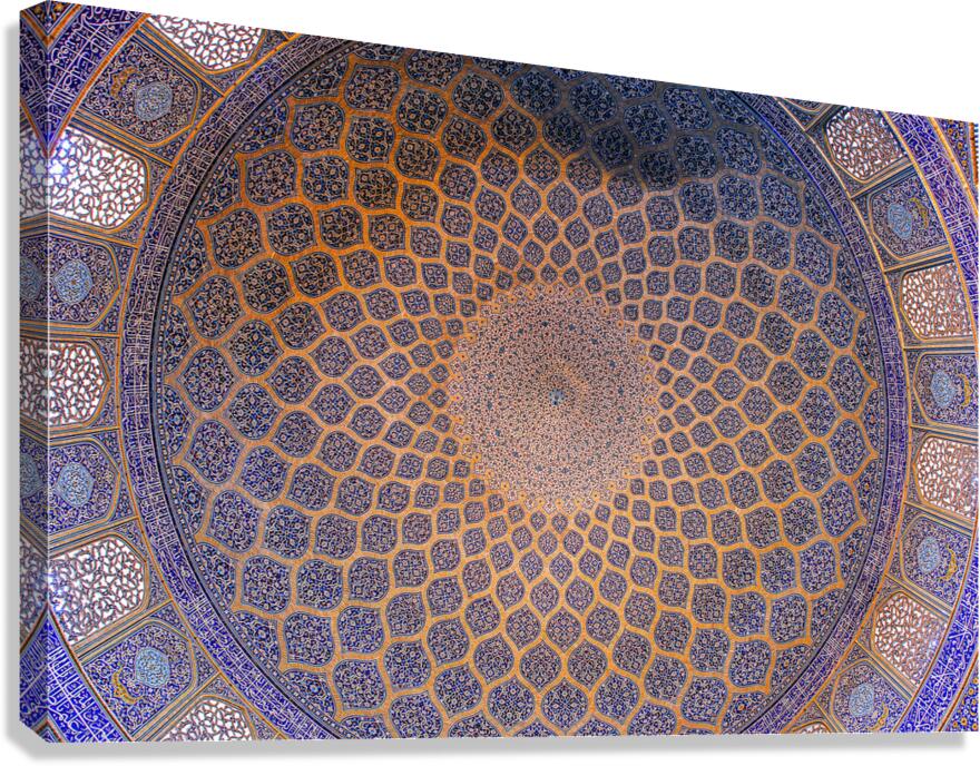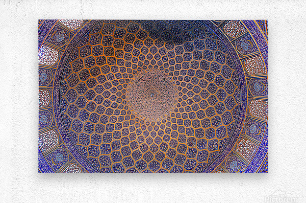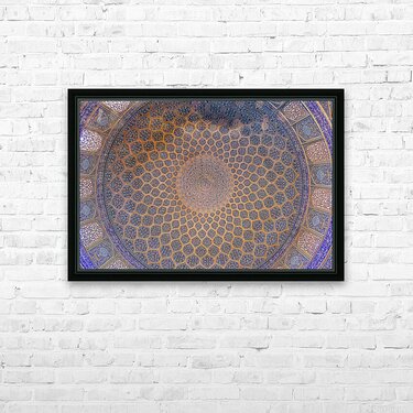 An exquisite view of the dome of the Shah Mosque (Sheykh Lotfollah Mosque) in Isfahan, Iran. This masterpiece of Persian-Islamic architecture captures the harmony of geometry, symmetry, and spiritual artistry. The intricate blue and golden tiles radiate from the center like an endless universe, symbolizing both divine order and infinite beauty. Perfect for collectors of fine art, architecture lovers, and those inspired by sacred spaces.