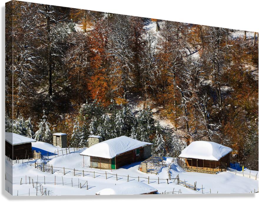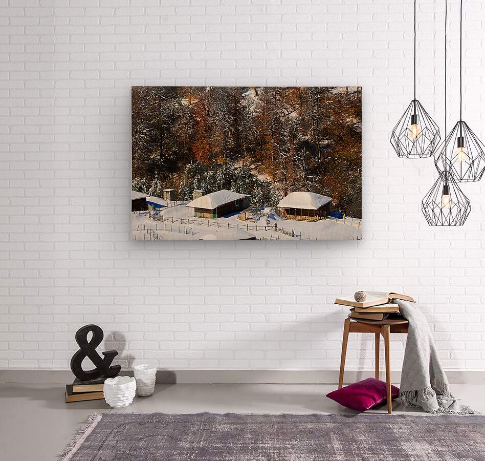 Captured along the scenic Asalem to Khalkhal road in northern Iran, this photograph showcases rustic wooden cabins embraced by a breathtaking winter landscape. The snow-covered roofs rest beneath a forest where autumn’s fiery colors blend seamlessly with the purity of winter’s white. This rare harmony of seasons makes the image a perfect choice for nature lovers, travel enthusiasts, and anyone looking to bring a sense of serenity and timeless beauty into their space.