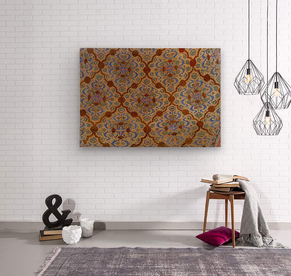 An intricate Persian ceiling design, resembling a celestial carpet woven with geometry, florals, and vibrant colors. The mesmerizing symmetry and detail reflect the spiritual essence of Persian-Islamic architecture. This artwork brings the timeless elegance of historic mosques and palaces into any modern space, celebrating the union of art and divinity.