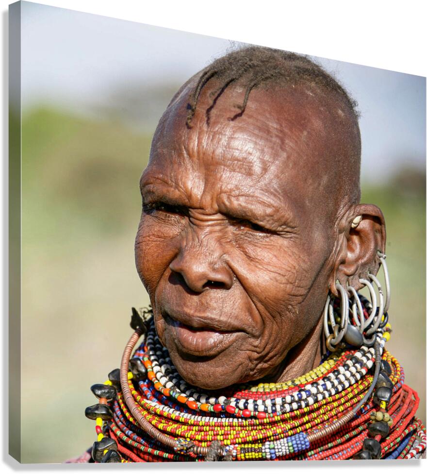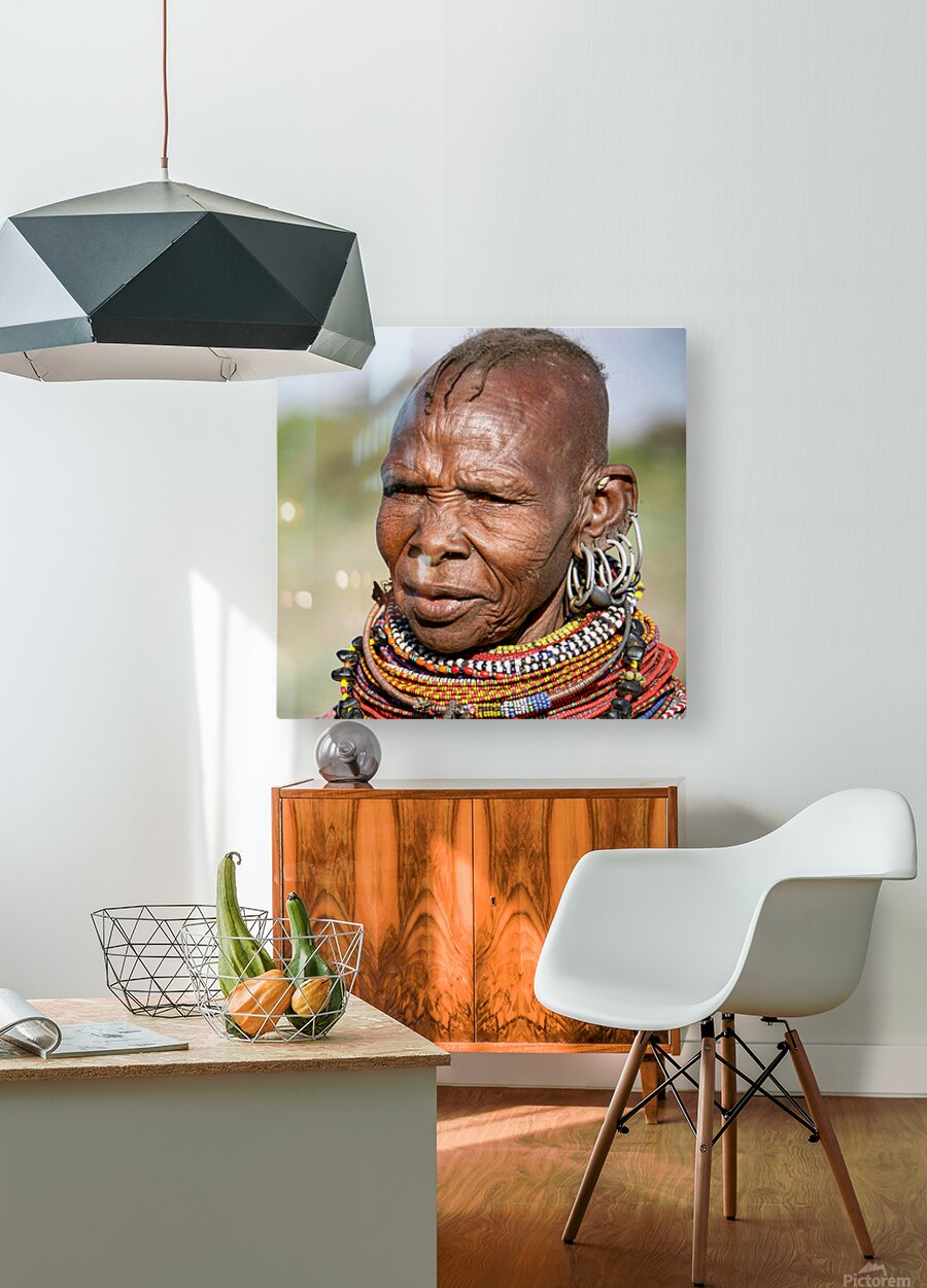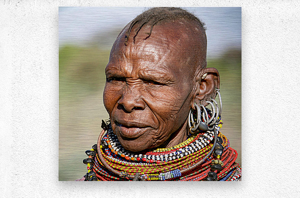 This striking portrait from the Samburu region of Kenya is more than an image — it is living history. The sun has etched its mark across her skin, each line a testament to strength, resilience, and the passage of time. Her vibrant beaded jewelry, crafted in traditional African style, radiates culture, identity, and elegance. Part of the permanent collection at the Museum of Contemporary Art in Isfahan, this luxury artwork brings authenticity, heritage, and timeless beauty into any distinguished space.