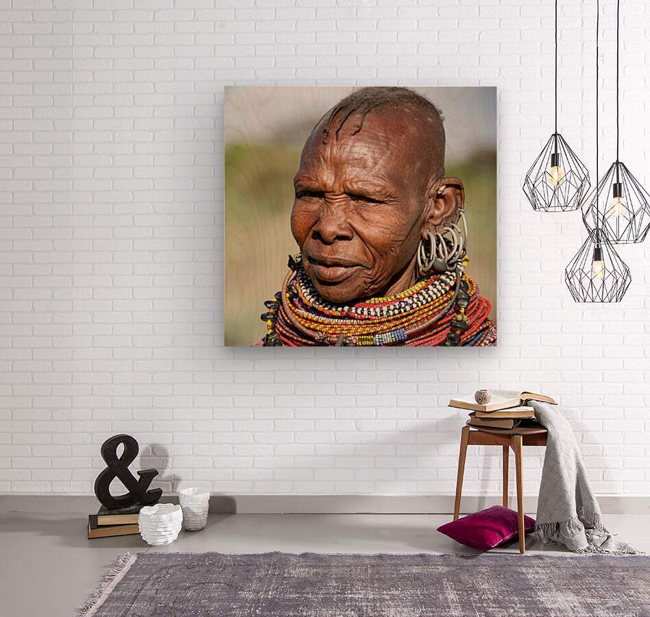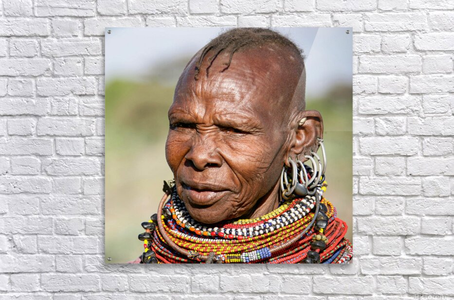 This striking portrait from the Samburu region of Kenya is more than an image — it is living history. The sun has etched its mark across her skin, each line a testament to strength, resilience, and the passage of time. Her vibrant beaded jewelry, crafted in traditional African style, radiates culture, identity, and elegance. Part of the permanent collection at the Museum of Contemporary Art in Isfahan, this luxury artwork brings authenticity, heritage, and timeless beauty into any distinguished space.