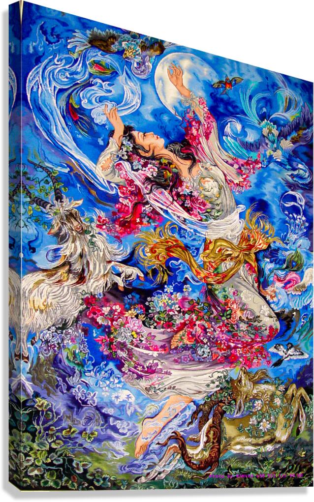 Persian Miniature Elegance This artwork, captured from a masterpiece carpet by the renowned Master Farshchian, is more than just a visual delight—it’s a timeless expression of Persian miniature art. With its rich colors, flowing forms, and dreamlike storytelling, it carries centuries of culture and artistry into a single frame. Perfectly suited as a luxury wall art or even as an exclusive wallpaper design, it transforms any space into a gallery of elegance and sophistication.