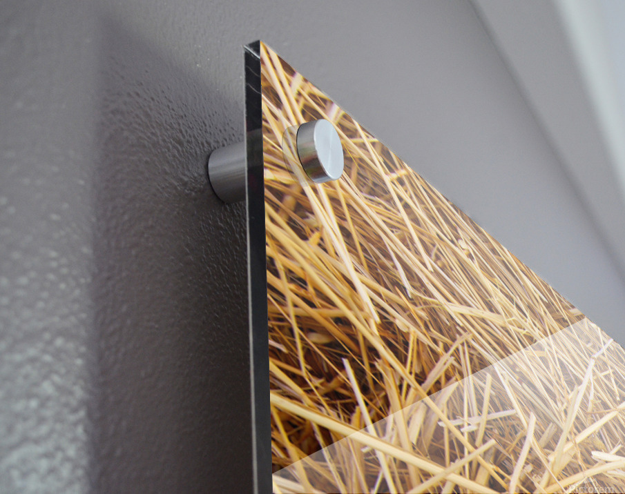 Printed to the edge - Ready to hang - provided with 4 premium polished aluminum stand off ( wall screws and mounting hardware provided )
