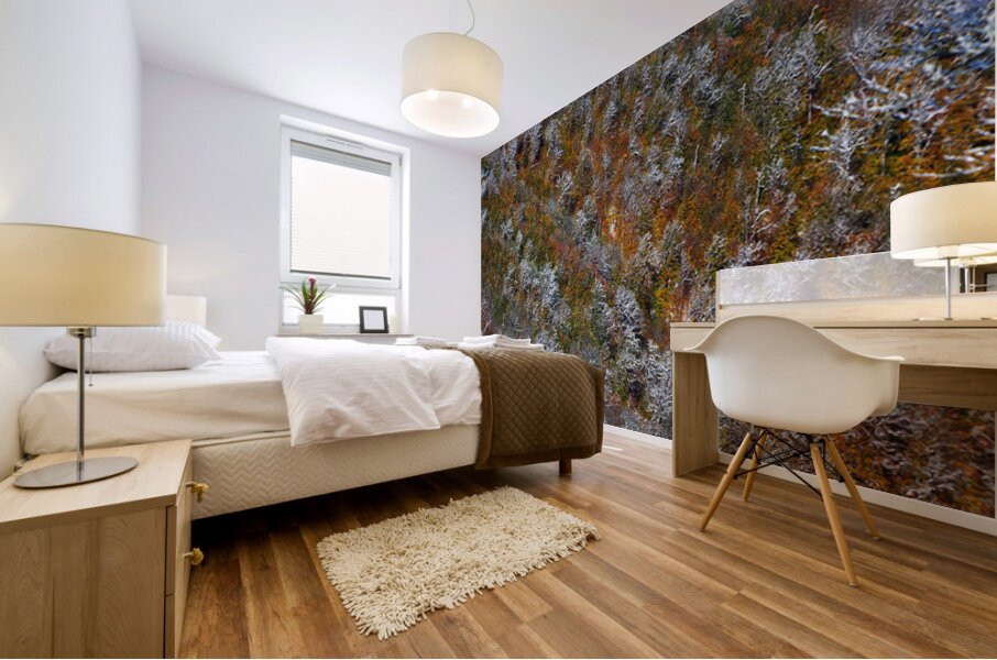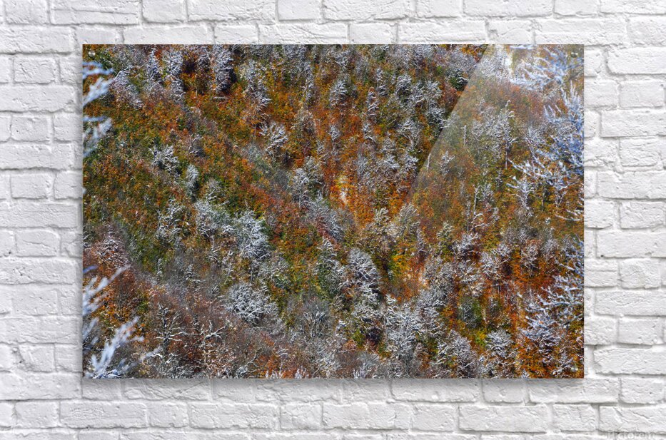 Poetry of Seasons – Captured in the enchanting forests of Asalem–Khalkhal, where autumn’s fiery colors embrace the first whispers of winter snow. This aerial artwork reveals a timeless harmony of change, turning nature’s canvas into a living painting. Bring the serene beauty of shifting seasons into your home and let it inspire warmth, depth, and tranquility in your space.