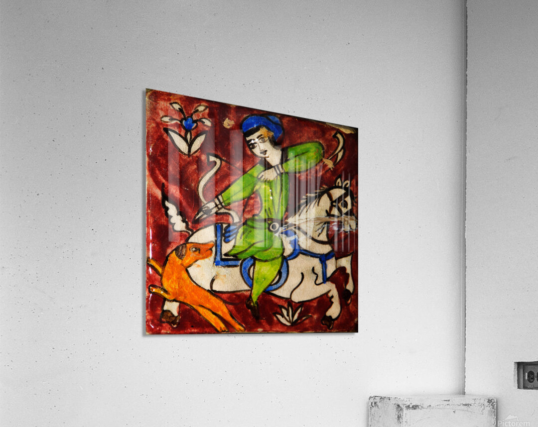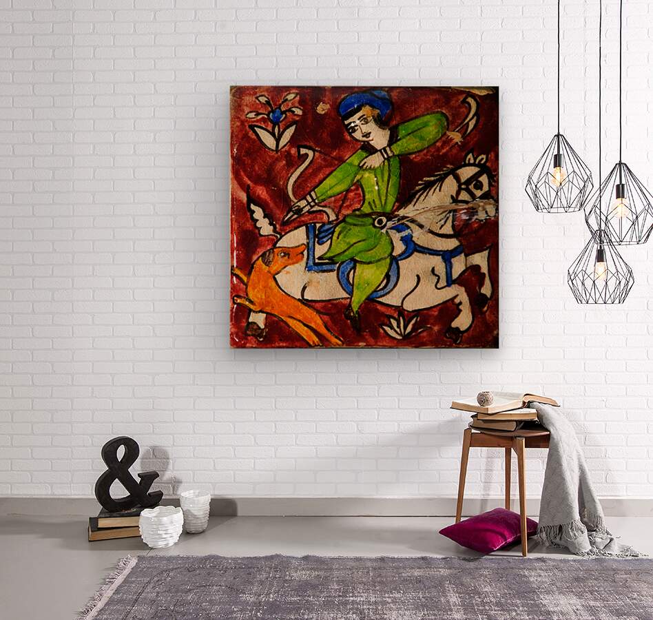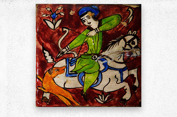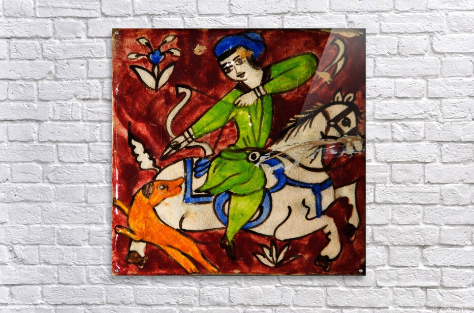 Step into the legends of Persia. Persian Hunt portrays a traditional hand-painted tile, capturing the dynamic motion of a rider aiming his bow while on horseback, accompanied by a loyal hunting dog. Printed on premium canvas, this artwork brings history, energy, and the storytelling spirit of Persian art into your home — perfect for collectors of cultural and classical masterpieces.