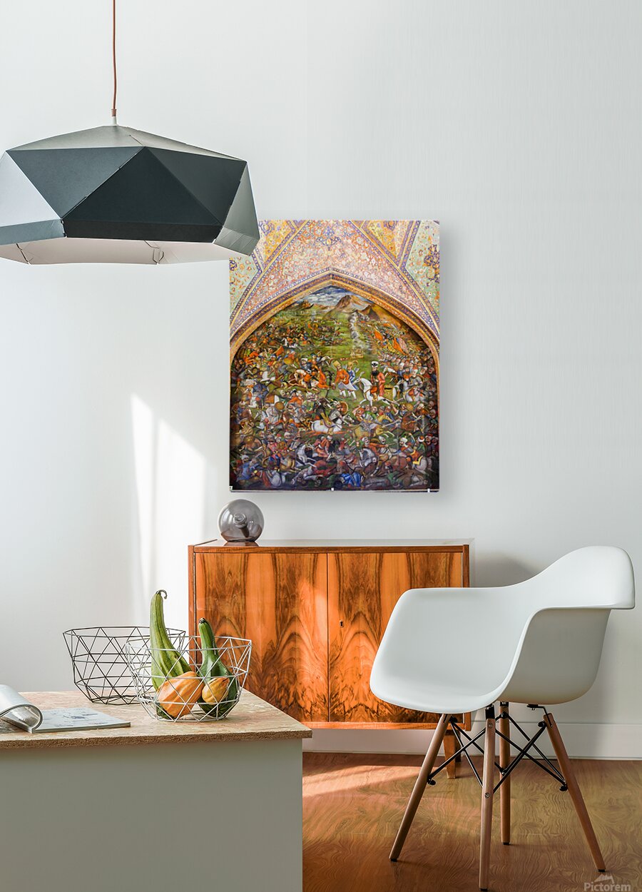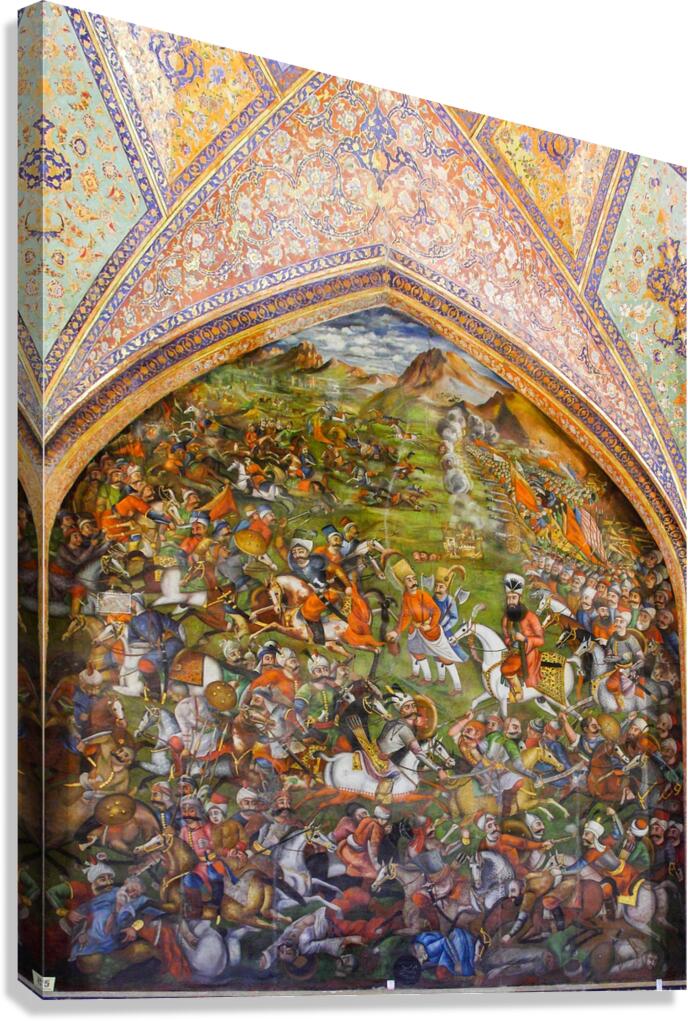 Step into the drama of history. Battle of Kings captures a grand Persian battle scene, painted with vivid detail under an ornate arch. Warriors, horses, and banners fill the canvas with motion, courage, and timeless storytelling. Printed on premium canvas, this artwork brings power, heritage, and cultural magnificence into your home — perfect for admirers of history and classical art.