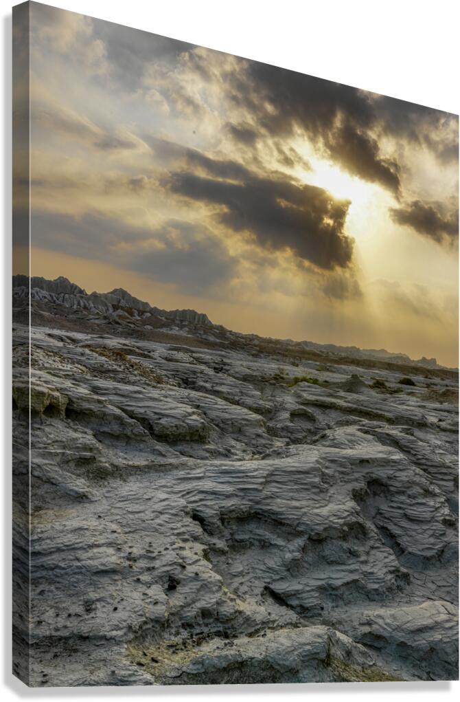 As the golden light breaks through heavy clouds, it touches the rugged earth with quiet reverence. Light Over Stone captures the timeless dialogue bet...[+]