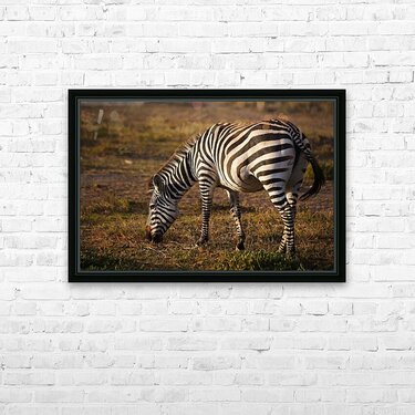 Bathed in golden light, the zebra grazes in quiet rhythm — its pattern a living artwork of contrast and balance. Harmony in Stripes celebrates nature’s effortless design, where simplicity and elegance coexist in perfect unity. A timeless piece that brings both calm and sophistication to any space, reminding us that beauty often lies in the balance of opposites.