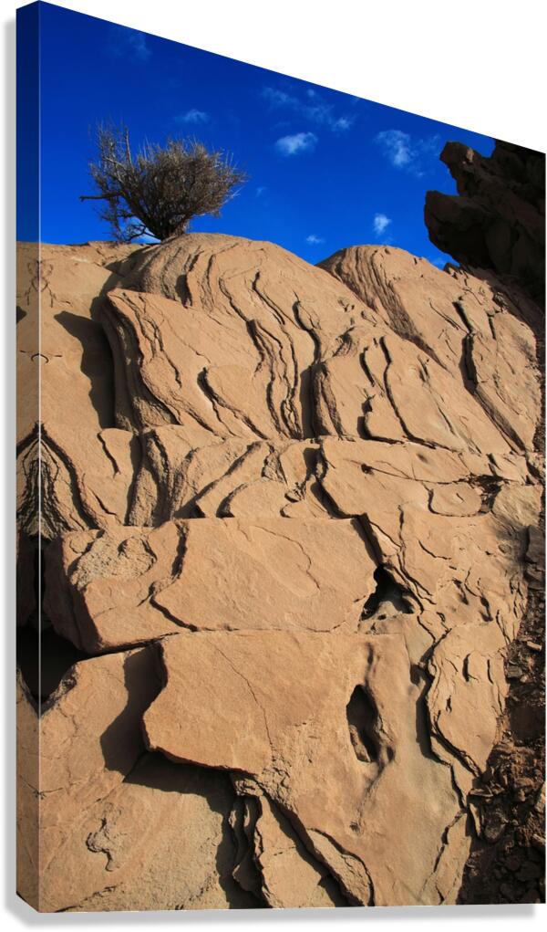 Emerging from the sculpted desert stone, a lone shrub defies gravity and time. Roots of the Sky embodies endurance, capturing the meeting of earth and heavens in raw simplicity and strength. A perfect addition for minimalist or nature-inspired spaces, this photograph radiates resilience, grounding energy, and the quiet beauty of survival.
