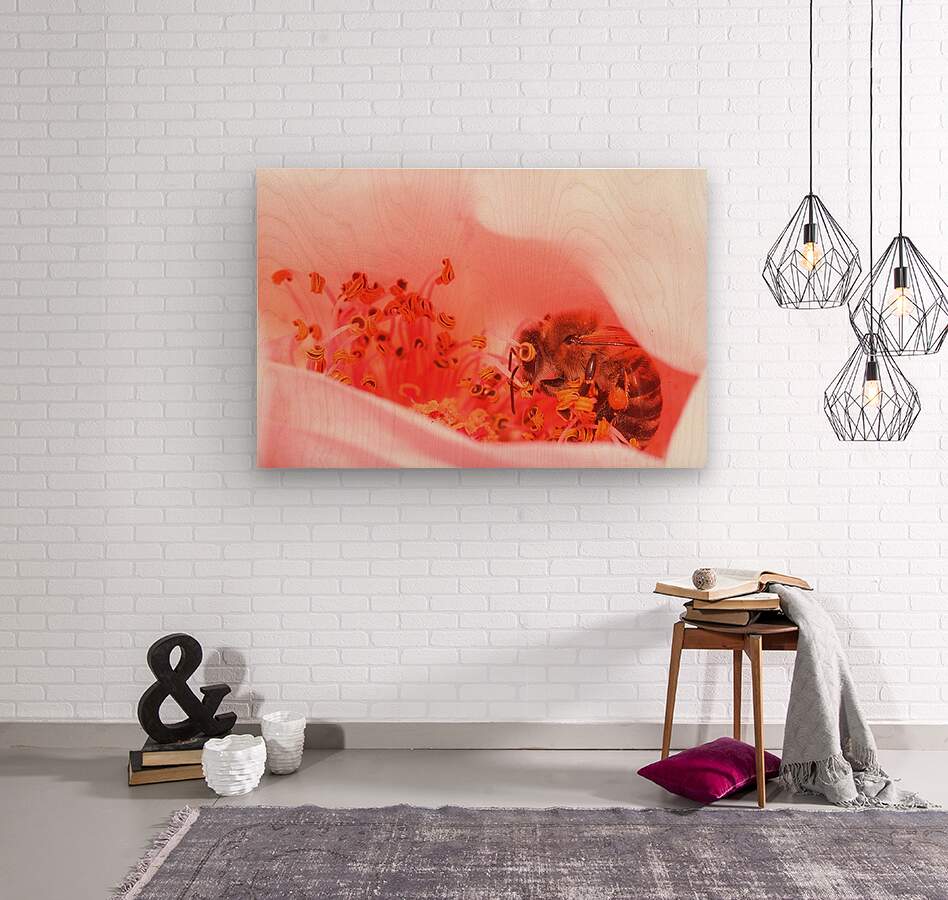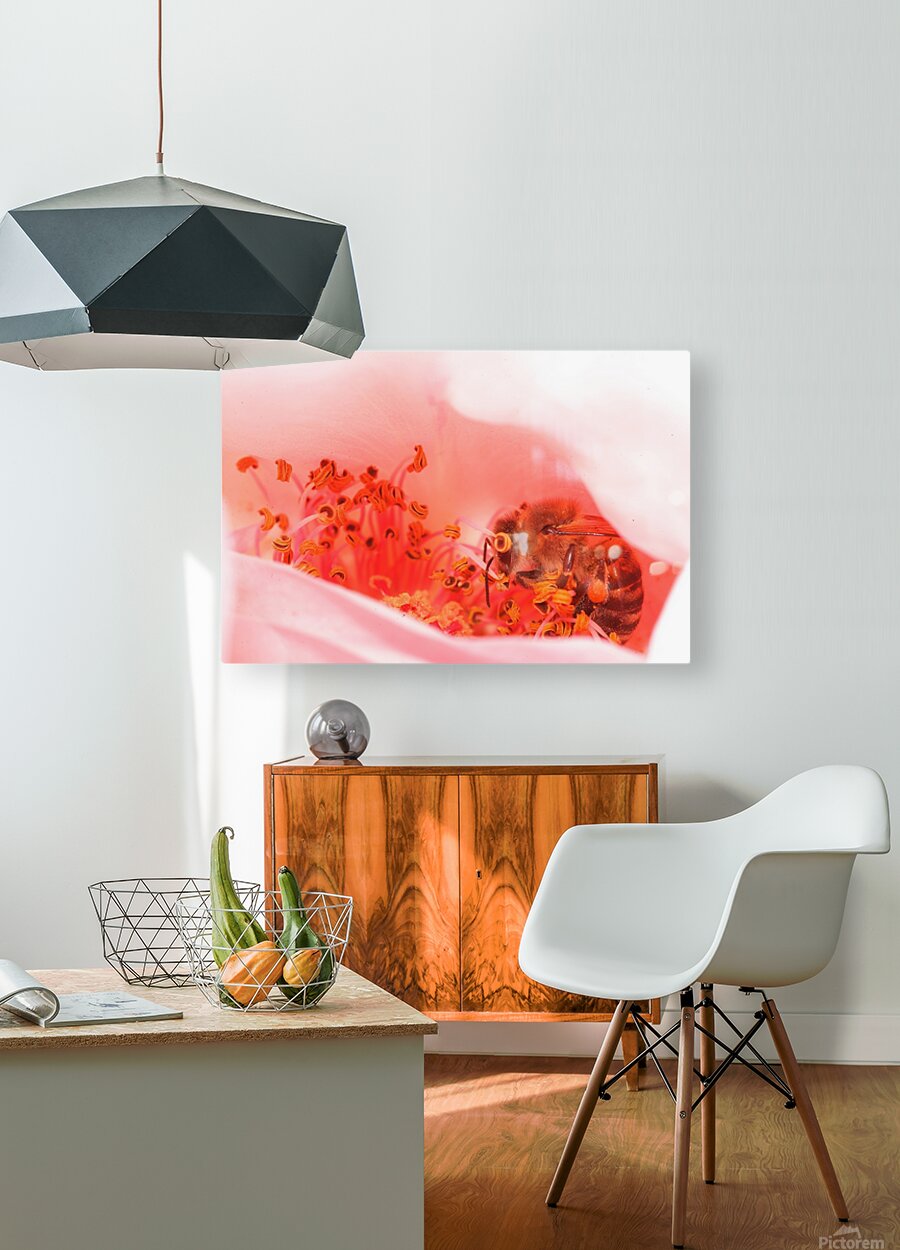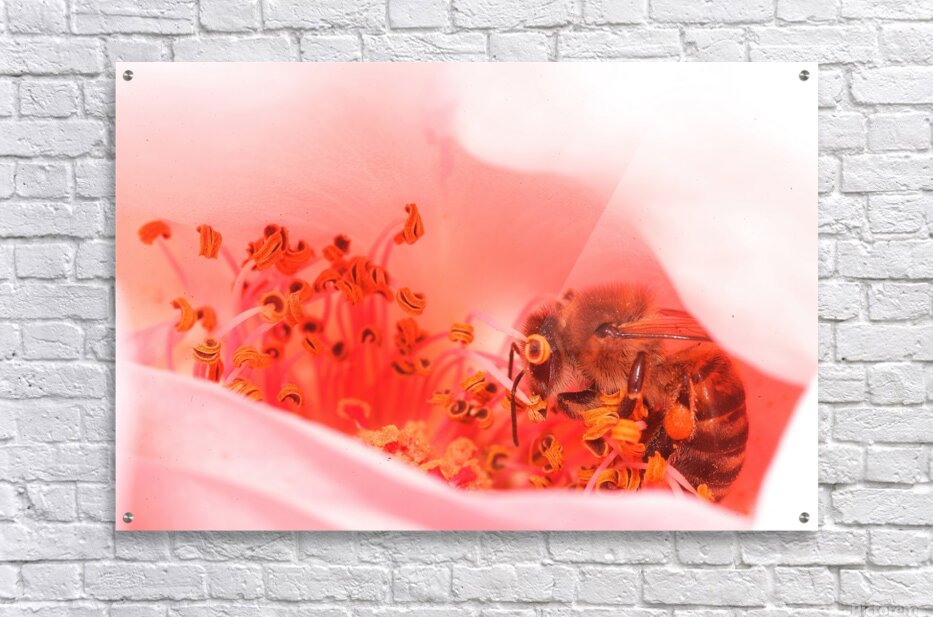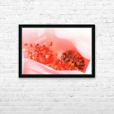 Inside the soft glow of a flower’s heart, a bee moves with quiet purpose — a reminder of nature’s delicate balance between beauty and survival. Heart of the Blossom captures the intimacy of life in motion, where every detail hums with color and connection. A stunning macro photograph that brings warmth, tenderness, and natural harmony to any living or creative space.