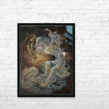 This mesmerizing painting captures the soul’s dance between the earthly and the divine — a poetic flow of spirit, color,...[+]