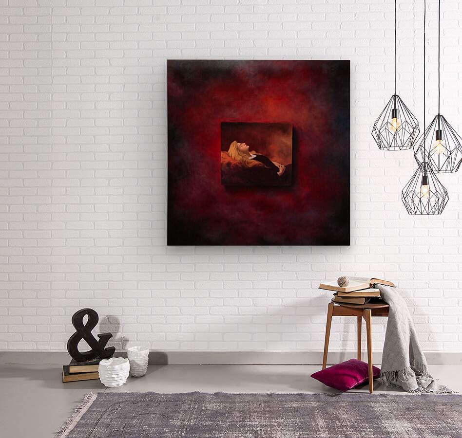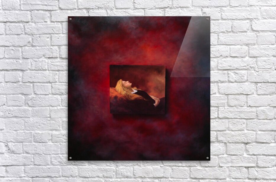 In Slumber, Alijanpour captures a haunting stillness — a moment between consciousness and surrender. The central figure, bathed in golden light, rests against a vast sea of crimson and shadow, symbolizing the fragile boundary between dream and reality. The work radiates both warmth and melancholy. The enveloping red mist suggests the pulse of life continuing beyond sleep, while the serenity of the subject evokes inner peace, vulnerability, and transcendence. It’s a meditation on rest — not as escape, but as return to the essence of being.