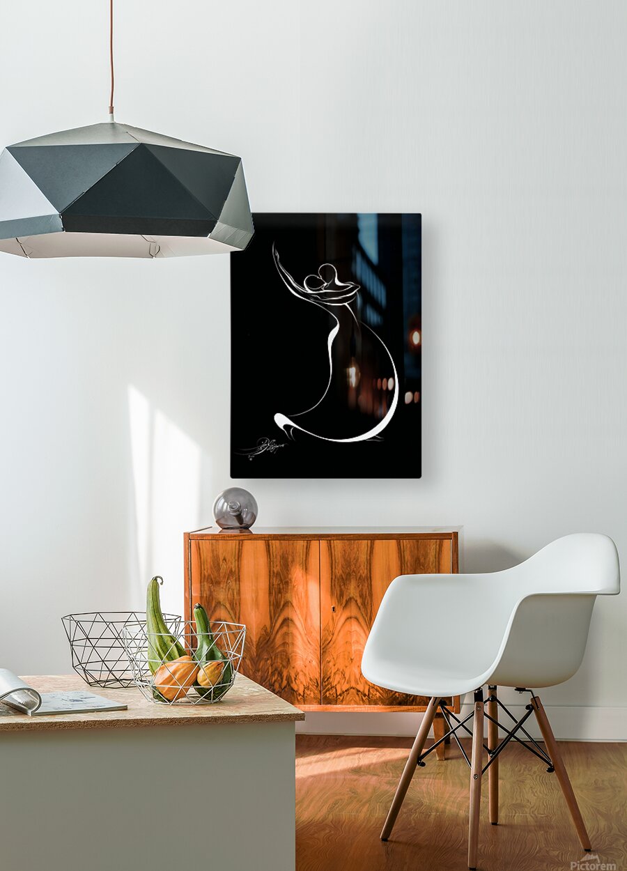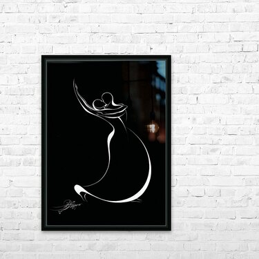 In Embrace of Light, Alijanpour translates love and movement into a visual symphony of flowing lines. The figures, intertwined in perfect rhythm, seem to rise and dissolve into one another — weightless, timeless, infinite. A masterful study in minimalism, this piece celebrates the serenity of union and the transcendence of connection.