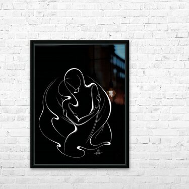 In Silent Embrace, Alijanpour portrays intimacy beyond words — two souls merging through fluid lines and timeless motion. The minimalist composition captures the tenderness of love in its purest form, where simplicity meets deep emotion. A perfect piece for those who value elegance, balance, and the quiet power of human connection — an artwork that brings warmth and serenity to any space.