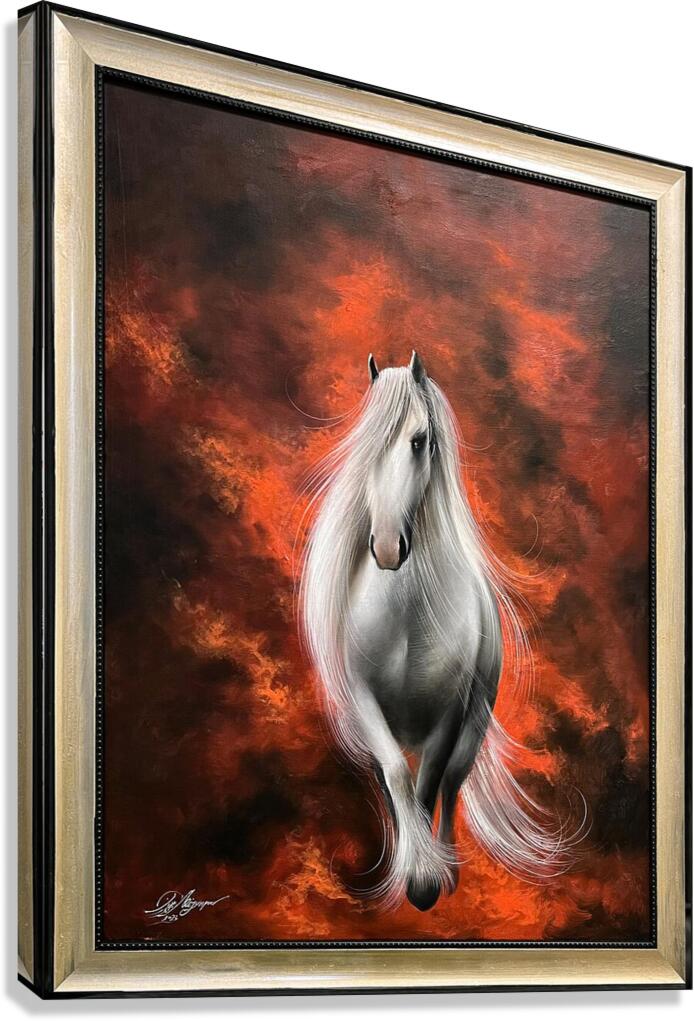 In Power of Love, artist Alijanpour portrays the majestic force of a white horse emerging through a storm of fire and passion — a symbol of freedom, strength, and purity rising above chaos. This breathtaking oil painting commands attention and emotion, perfect for those who seek a statement piece that embodies courage, elegance, and the untamed beauty of the soul.