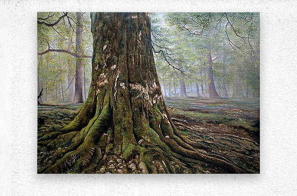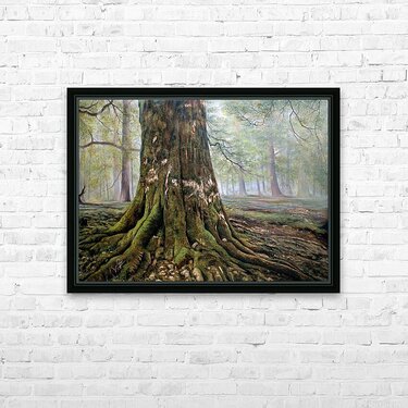 In Source, Alijanpour invites us into the quiet majesty of the forest — a world where time moves differently and life pulses beneath the surface. The ancient tree, with its deep roots and weathered bark, stands as both witness and guardian — a symbol of endurance, memory, and renewal. The interplay of light and mist suggests the spiritual essence of nature — the unseen forces that sustain and connect all living things. This painting is not merely a landscape; it’s a meditation on origin, belonging, and the eternal dialogue between earth and spirit.