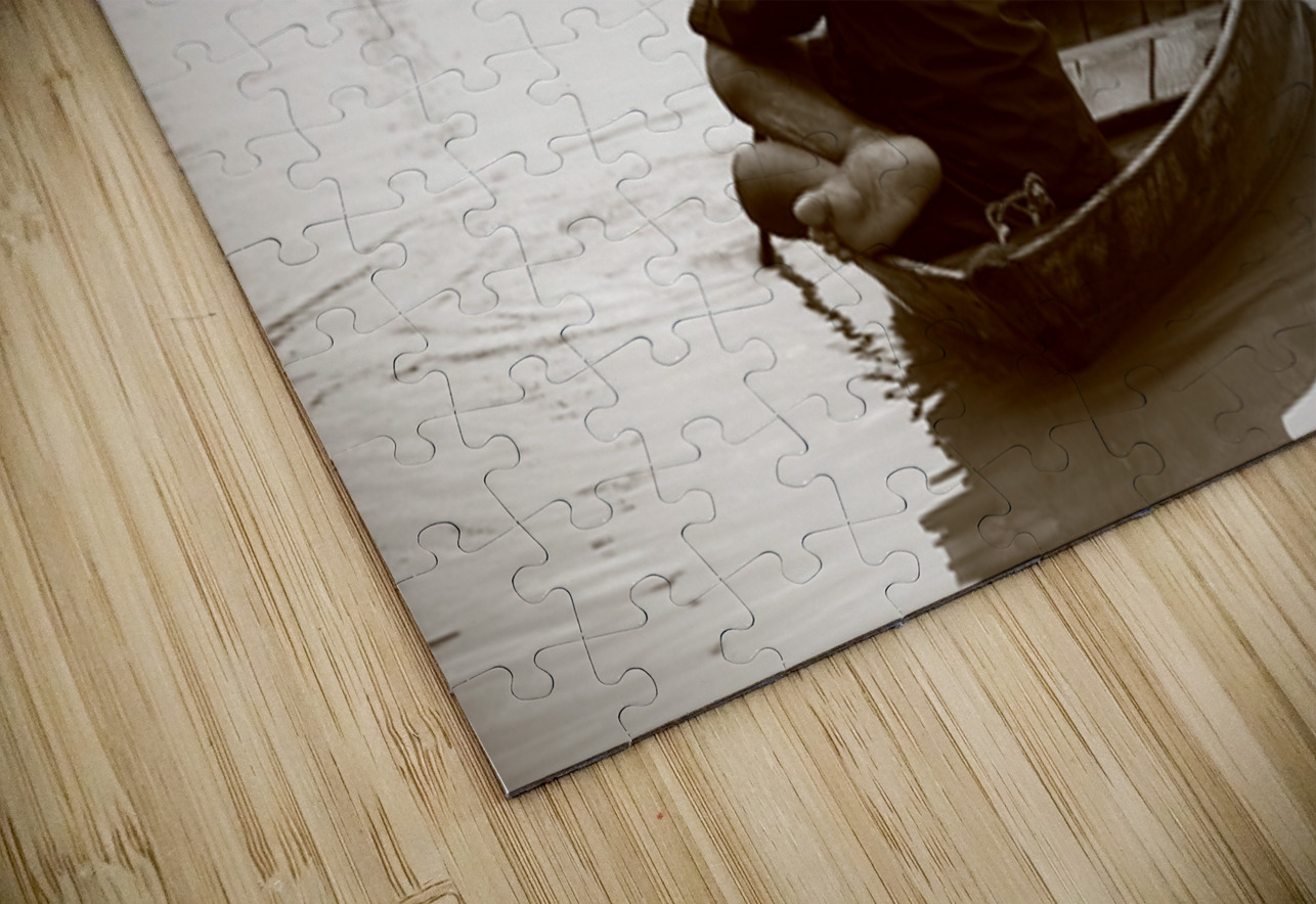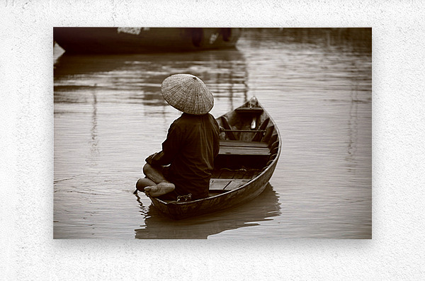 Discover the poetry of stillness. Silent Waters captures a lone figure in a wooden boat, drifting in quiet reflection. The sepia tones enhance the tim...[+]
