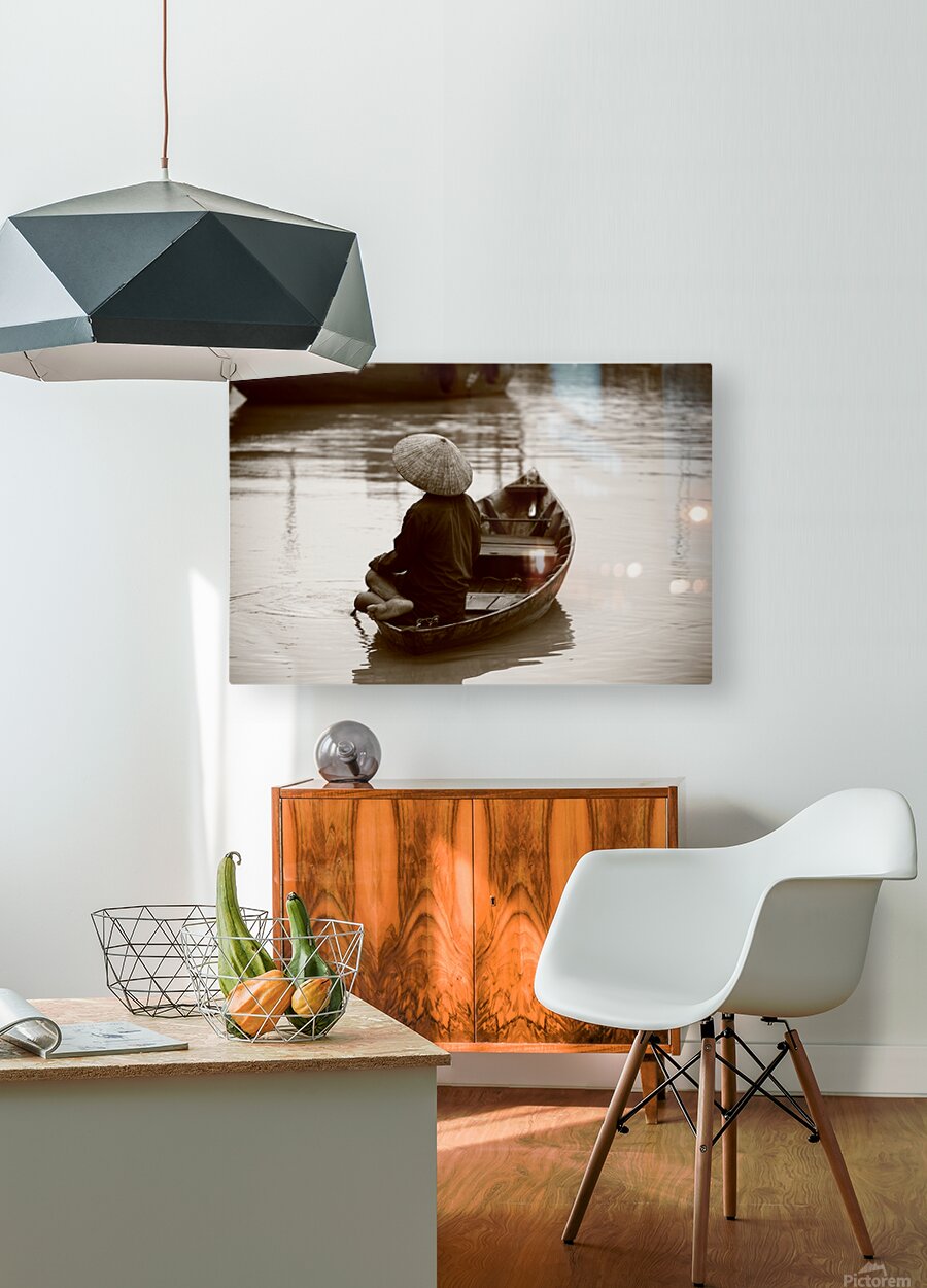 Discover the poetry of stillness. Silent Waters captures a lone figure in a wooden boat, drifting in quiet reflection. The sepia tones enhance the timeless beauty, evoking simplicity, peace, and life close to nature. Printed on premium canvas, this artwork adds depth, calm, and a touch of storytelling to any interior — perfect for lovers of fine art and minimalism.