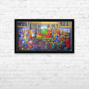 Enter the grandeur of history. Royal Court of Persia depicts a magnificent royal gathering, filled with courtiers, musicians, and attendants in vibrant attire. Every detail reflects the richness of Persian art, storytelling, and cultural heritage. Printed on premium canvas, this artwork brings majesty, tradition, and timeless beauty into your home — perfect for collectors of historical and cultural masterpieces.