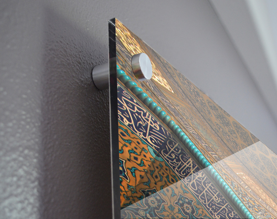 Impression sur acrylique avec entretoises ( cylindres métalliques )