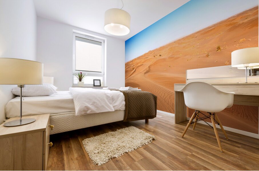 Endless dunes stretch beneath a flawless sky — a sea of golden silence shaped by the breath of the wind. Waves of Silence captures the serenity and strength of the desert, where stillness becomes poetry. A powerful minimalist landscape that brings warmth, calm, and balance to any living or contemplative space.